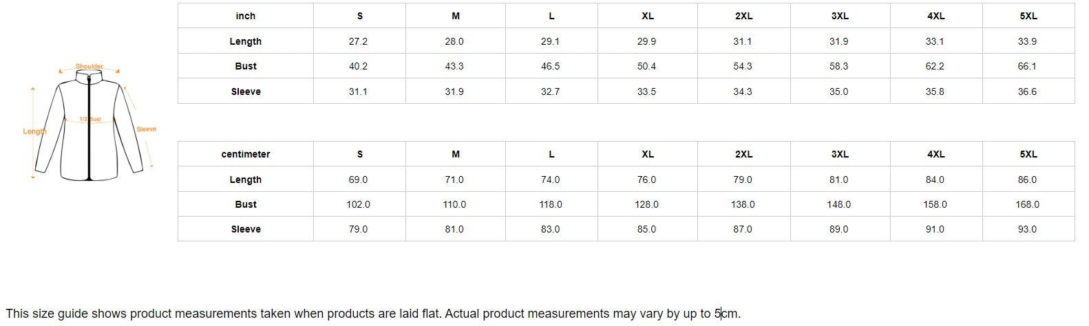 centimeter S M L XL 2XL 3XL 4XL 5XL