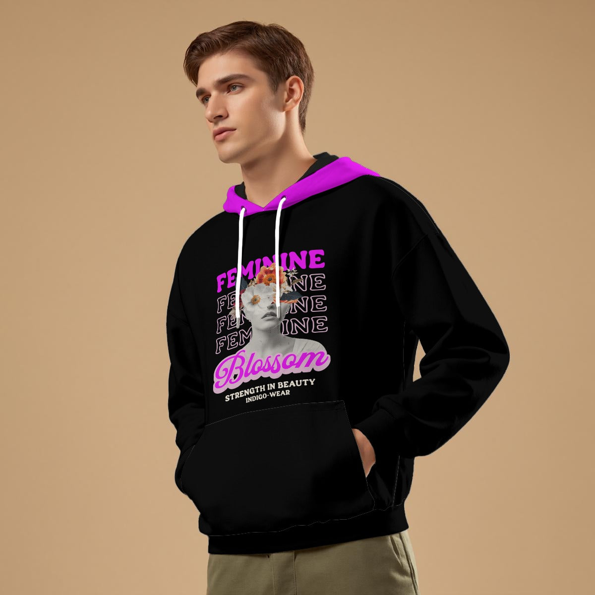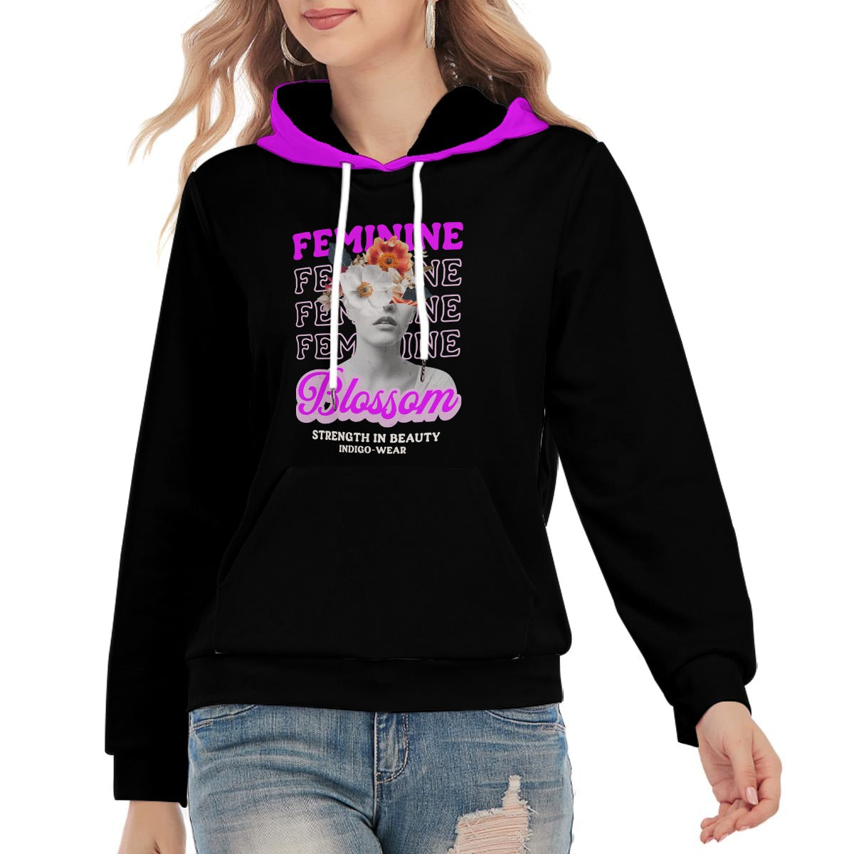 Divine Feminine Strength "Beauty" Floral Face Hoodie 100% ORGANIC COTTON